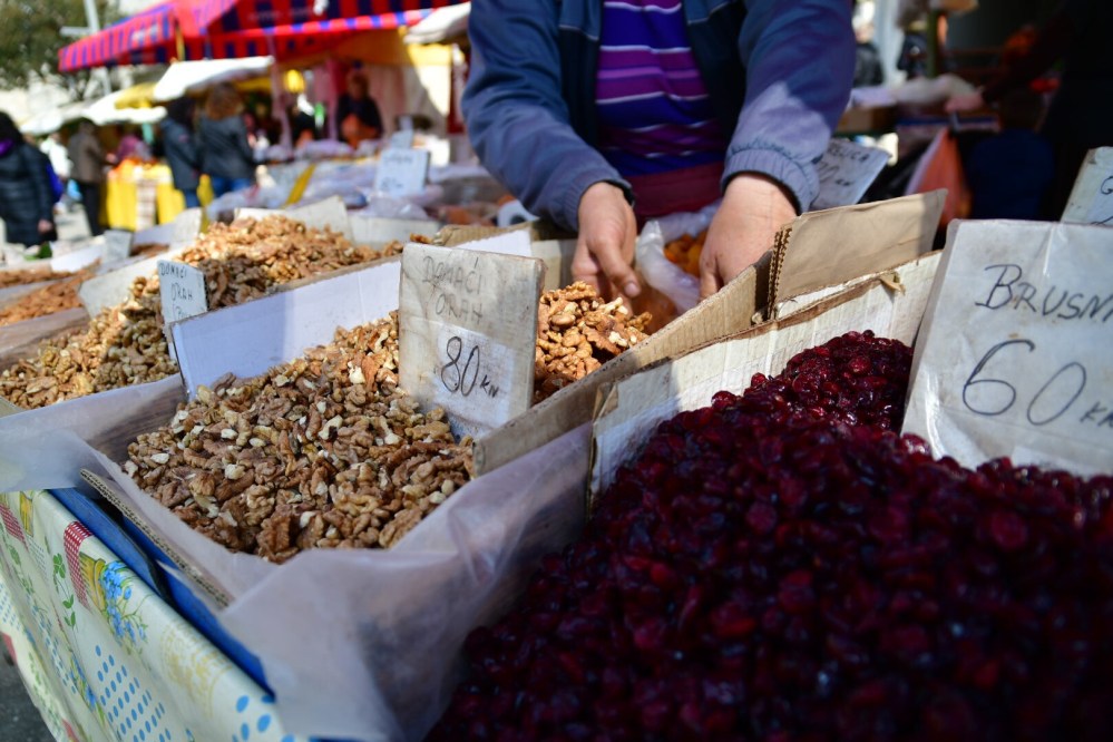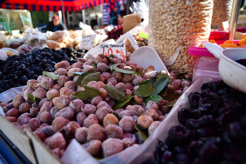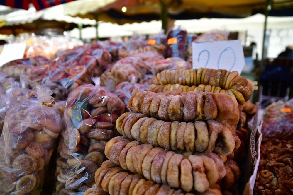 First thing that was running at full steam was the Green Market. This is a combination of a farmers market and, as one of the folks at my hotel put it, a flee market. Lots of tourist garbage around the outer market and they are their pretty much every day but this day they also had a lot of groceries for sale. Much of the produce was the same that can be bought at your local grocery store in the States but they also had a lot of dried fruits and smoked meats. You could tell you were almost on the meats before you got to them; a real homey wood smoke to them. The dried fruits and nuts were scattered throughout. There was quite a bit of citrus fruit, go figure in the Mediterranean. There were also several regular shops that opened directly onto the market. I’ve tried to take some images of the market to show what they had just keep in mind I was shooting from the waist so they may be a bit out of focus.