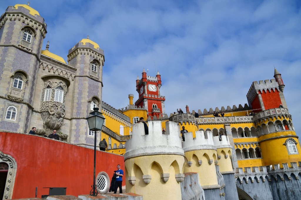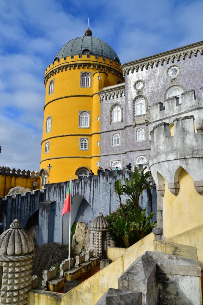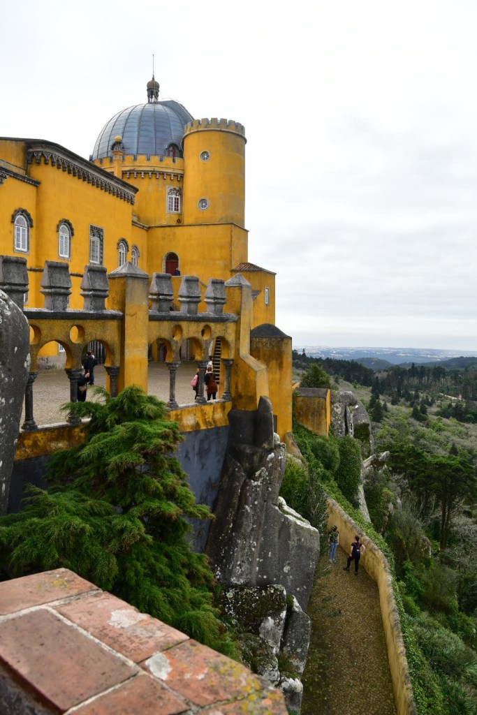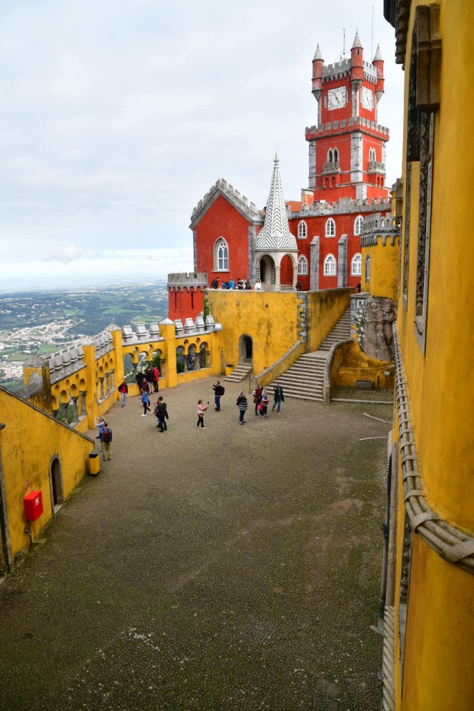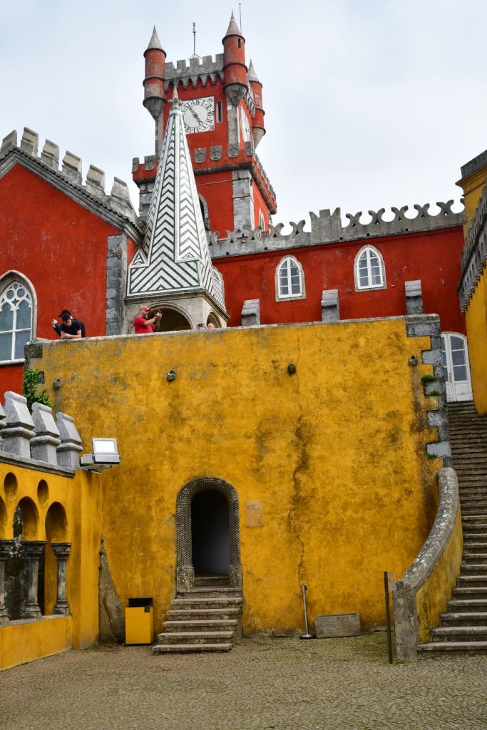 The Pena Palace is actually relatively new at close to 200 years old. An aging monastery it was turned into a palace by the king of Portugal. The current exterior colors are the result of a renovation in the 1990s creating the unique coloring we saw today.
