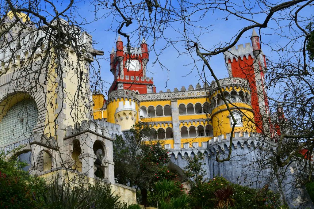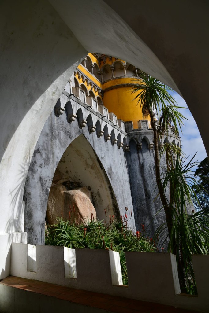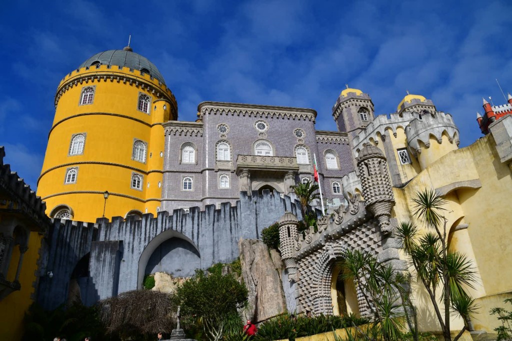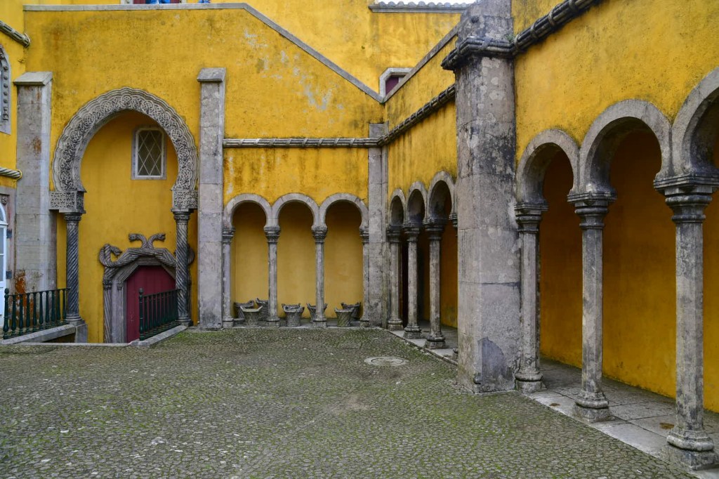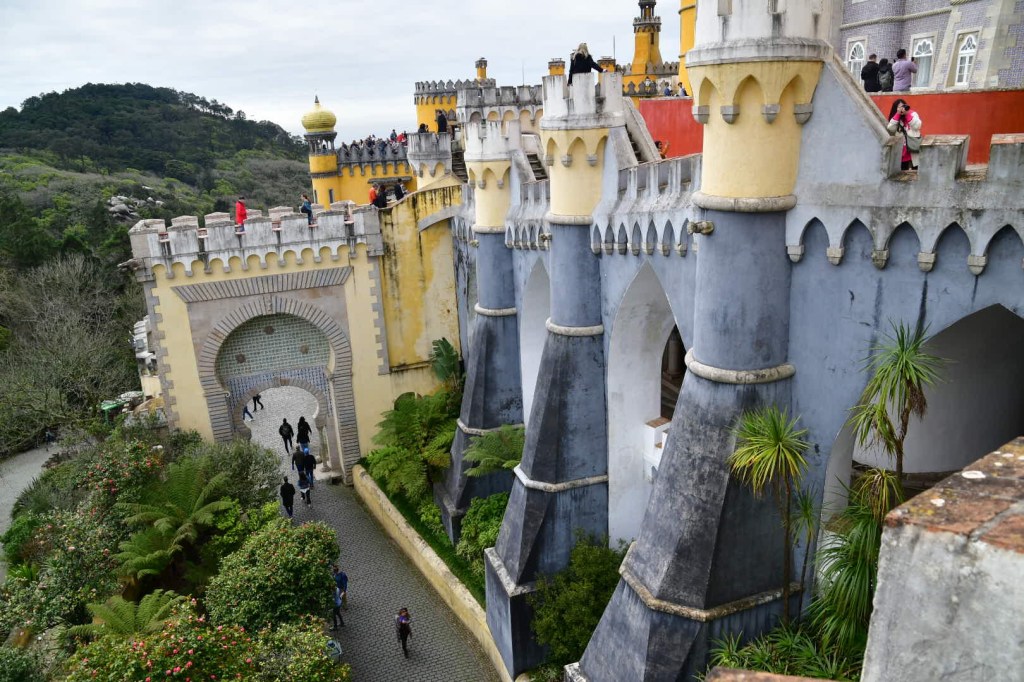 The Pena Palace is actually relatively new at close to 200 years old. An aging monastery it was turned into a palace by the king of Portugal. The current exterior colors are the result of a renovation in the 1990s creating the unique coloring we saw today.