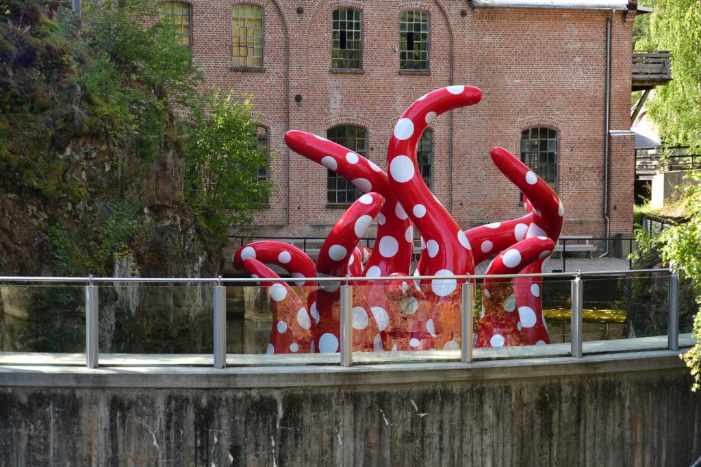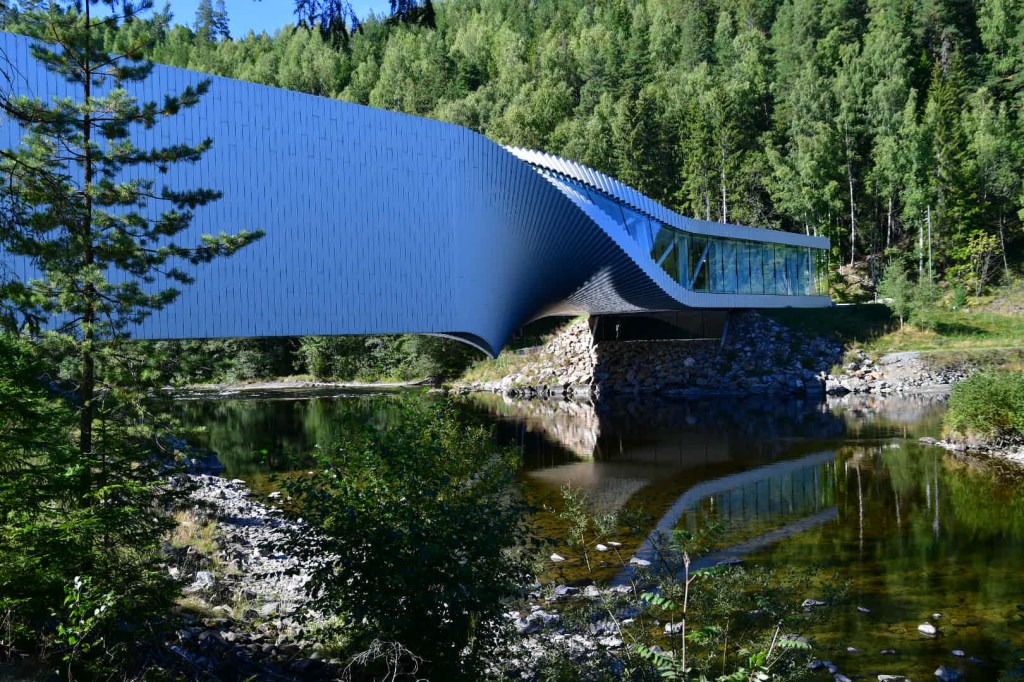 Today’s adventure was minimal but something I had been looking forward to since I had watched a video on the drive to Bergen from Oslo. My first real stop of the trip was the sculpture park of Kistefos. Now, I’m not very interested in modern art but the park boasts a exhibit space in the form of a twisted bridge. The nifty part is that the twist shows on both the interior and exterior! There is also an old wood pulp mill with explanations on how the equipment used to work in addition to some other strange and interesting installation pieces.