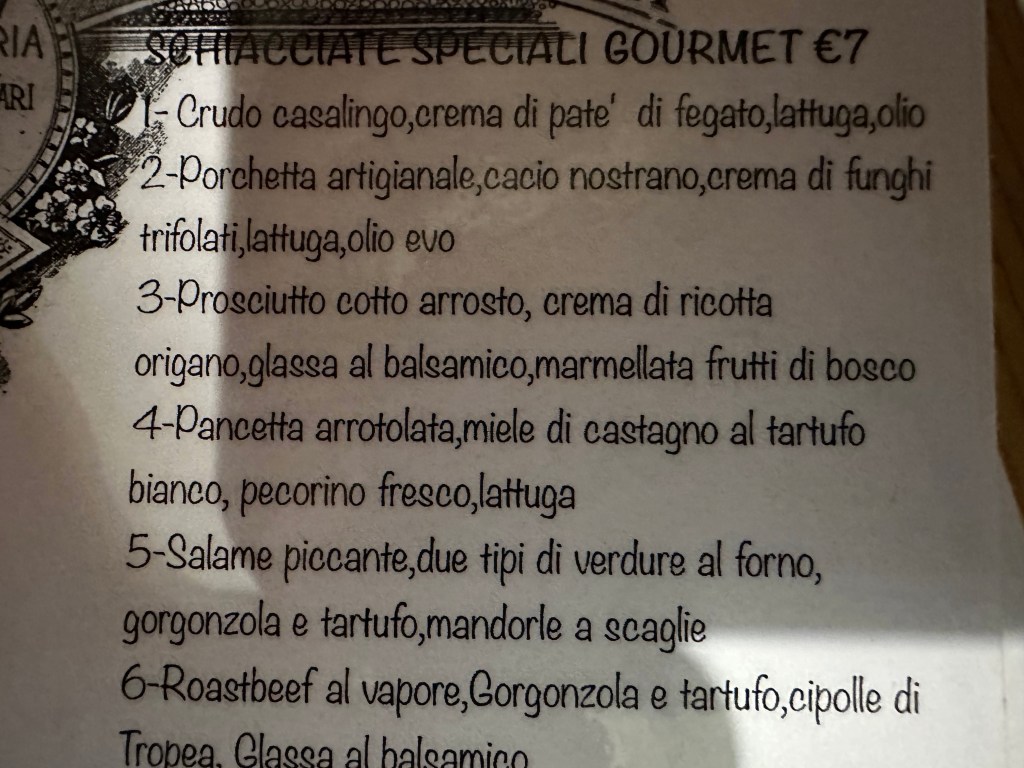 Part of the reason that I cam to Perugia was because of a Stanley Tucci special on Italy. He went to a restaurant called La Prosciutteria and the food looked great! I had been looking forward to lunch there since the beginning of the trip. It was worth the wait and the price was very reasonable.