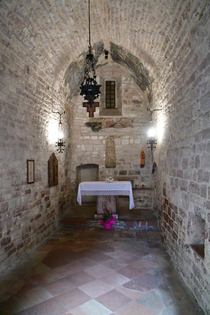The steps down the very small oratory of the birthplace of Saint Francis.