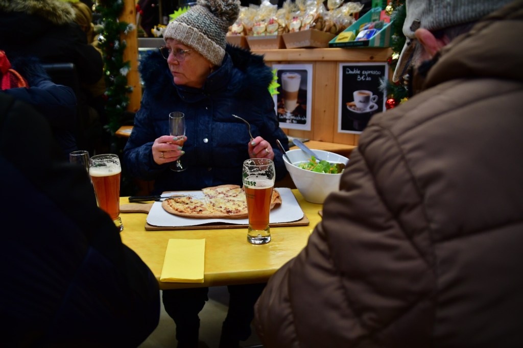 The town was filled with people from all over to enjoy the markets, walking shoulder to shoulder through the crowded streets. The day was sunny, a first, but still cold.