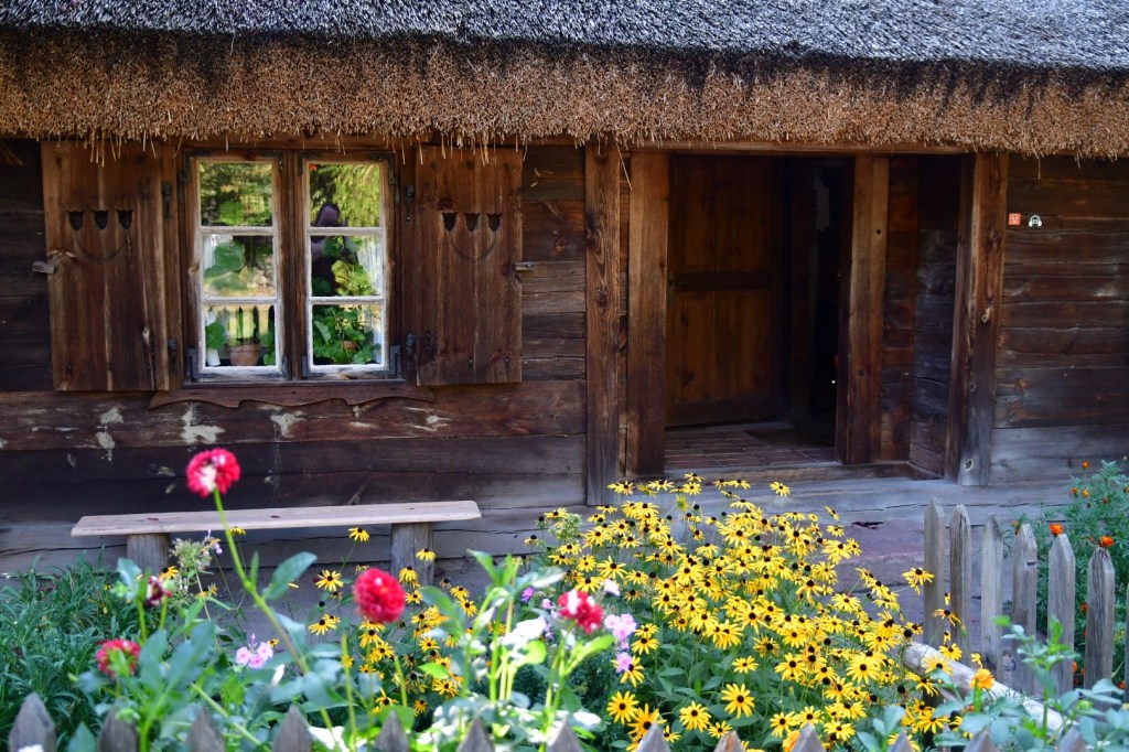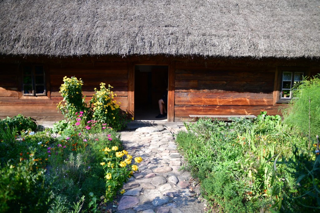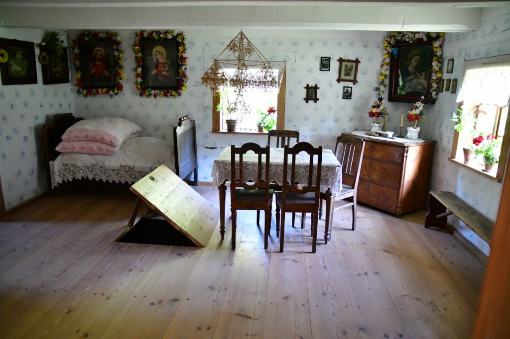 The museum had two sections, one inside and one outside. The inside section was small but fit a lot of daily life information into a small area. The outside wasn’t huge but had multiple buildings from the late 1800’s into the early 1900’s. You could go partway into some of them. On the whole they had thatched roofs. Many were multigenerational homes. They made a point of showing that the grandparents were using older items and the next generation were using the more modern implements. This was showing that even in rural Poland, the rapid changes of the time were showing up in every household.