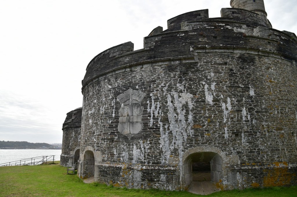 Traveled near the city of Falmouth to go see the two Tudor era gun forts that protected the bay entrance from French and Spanish warships. Built on either side of the river mouth, Pendennis Castle and St. Mawes Castle were designed so that their fields of fire would overlap any ship trying to go upstream.