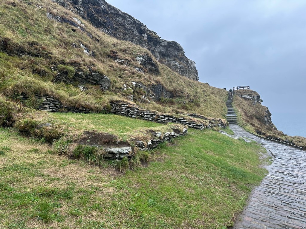 I am soaked. It rained for the entire day and today’s excursion was to Tintagel Castle. The castle sits on an island of rock jutting out into the sea. The wind was whipping across the top of the island such that I could not see where I was going as the rain was flying directly in my face. By the end of my walk, I was soaked straight through all of my clothing. Only now am I starting to dry out.